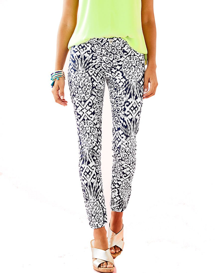 Instant fashion statement - just add the Kelly Skinny Ankle Pant. Anytime you step out in these perfectly printed pants you are sure to have a fun time. Pair with a fabulous top and your best gold wedges for any special occasion.